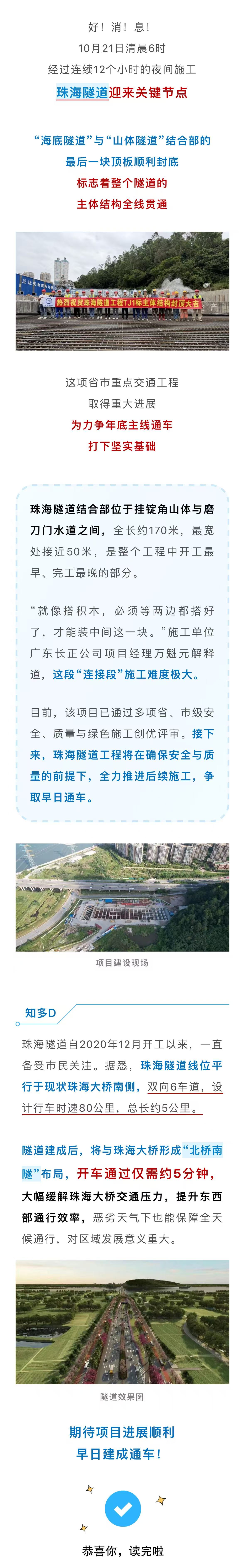 珠海隧道,全線貫通!